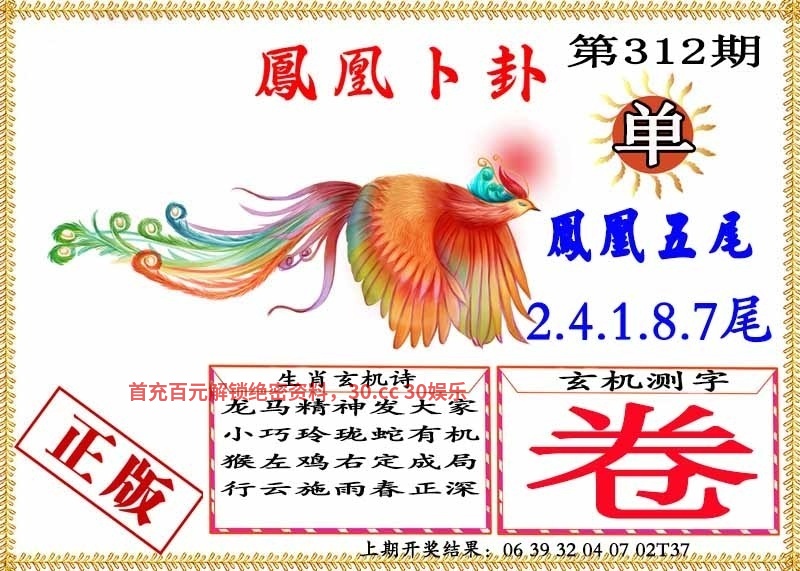 | 317期:五肖 | 龙鸡狗兔猴 | 开:發00 |