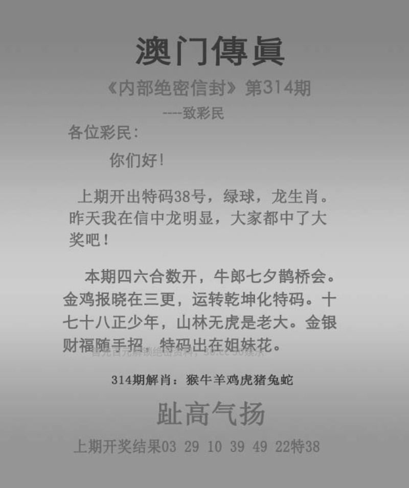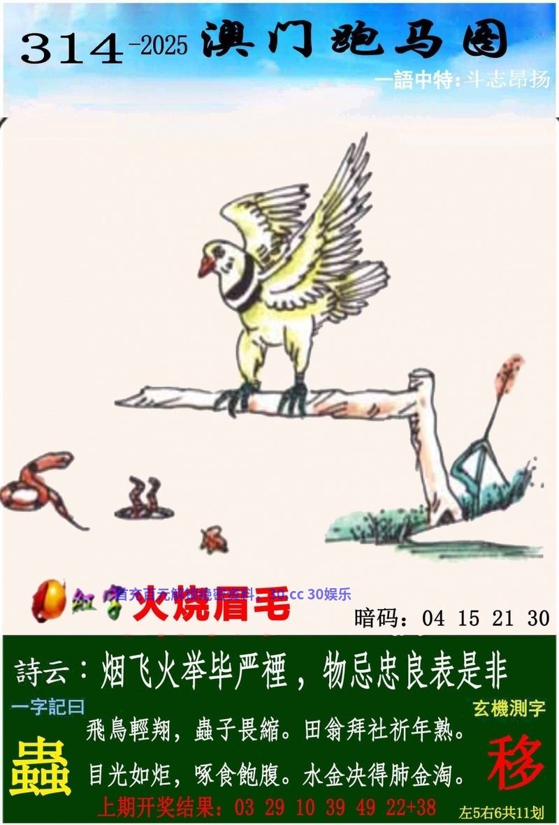 317期:赢彩论坛 【平特一尾】 已公开313期三行必赚【水金木】开龙38中